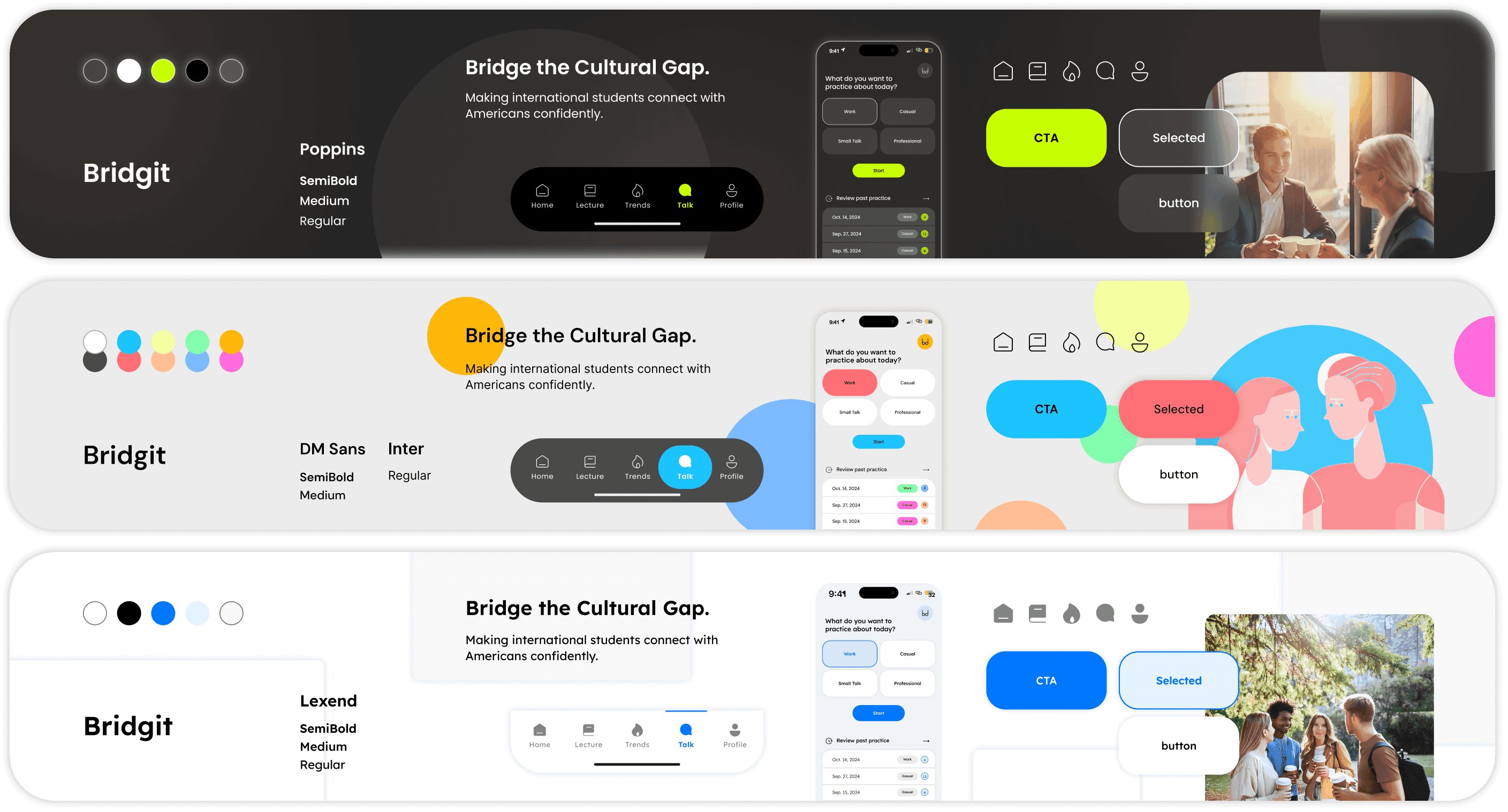 Here are three UI stylescapes explored three visual directions that all aligned with our brand personality: Reliable, Friendly, and Innovative.